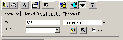 Vælg vej navn i rullelisten og husnummer i rullelisten og klik på ikonet