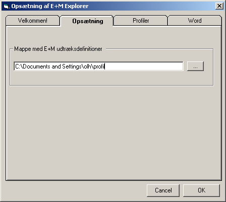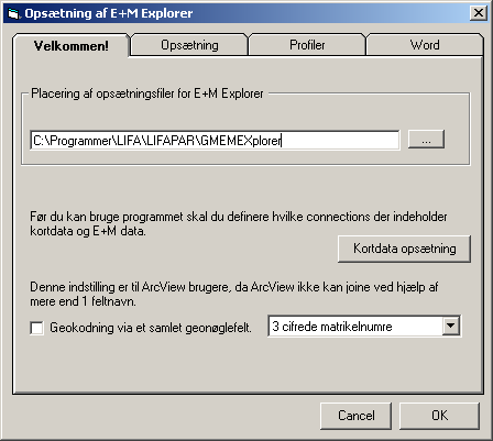 Opsætning af E&M explorer er delvist forskellig afhængigt af implementering