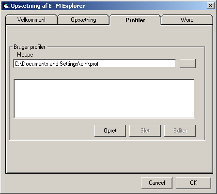 Profiler benyttes til at fravælge views som ikke ønskes vist. |